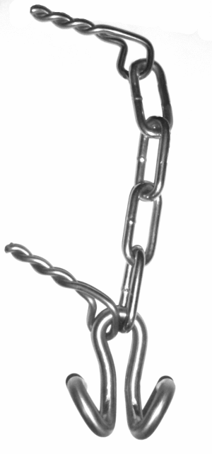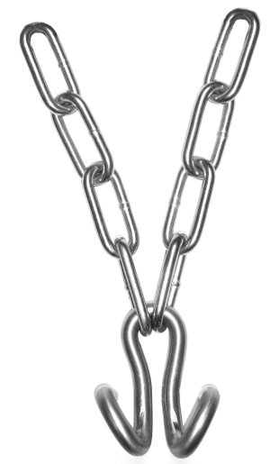 We fit normal or our innovative parallel eye bolts/hangers depending on the required orientation of the lower-off point and the number of chain links.