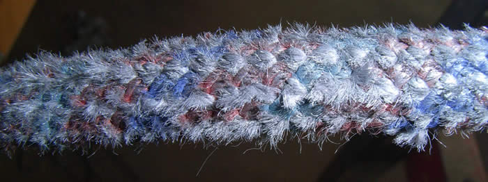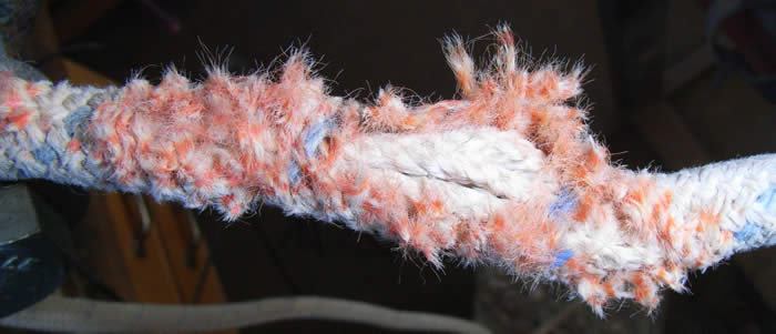 Most of the pull tests gave a certain amount of glazing on the rope, generally the higher the power of the plate the worse this was and subsequent pulls on the glazed parts gave a loss of power of ca. 20%. The rope companies assure us that this glazing has no effect on the rope and will dissapear with use which it certainly appears to do.