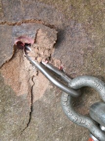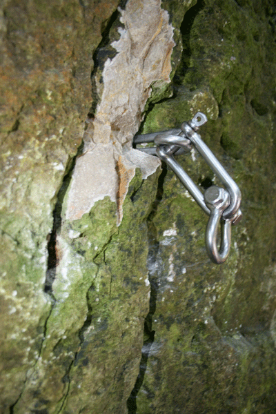 The two setups above can be a time consuming faff and you need to carry even more gear to the top of the crag, quick and efficient is to place a couple of bolt-ins. I use cheaper steel bolts in pairs, 8mm are plenty strong enough,and remove the hangers later (drill the holes deeper so you can drive them in flush with the surface after use). If your going to bolt a lot of routes along a cliff then it´s worth spending a bit of time installing a line of bolts a few metres back and around 5m apart, this saves a lot of time and complication later.