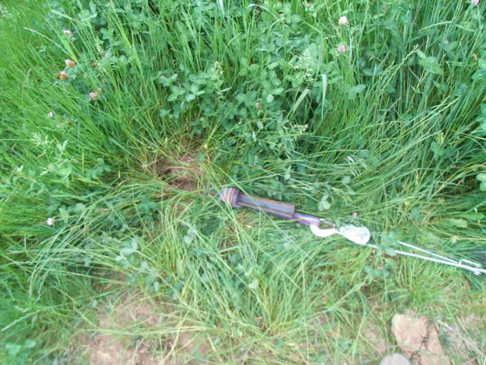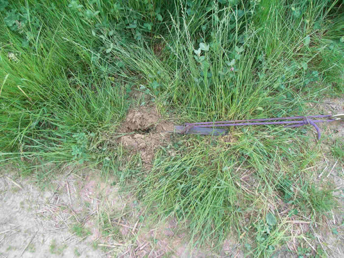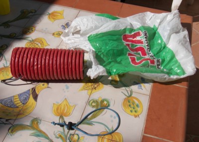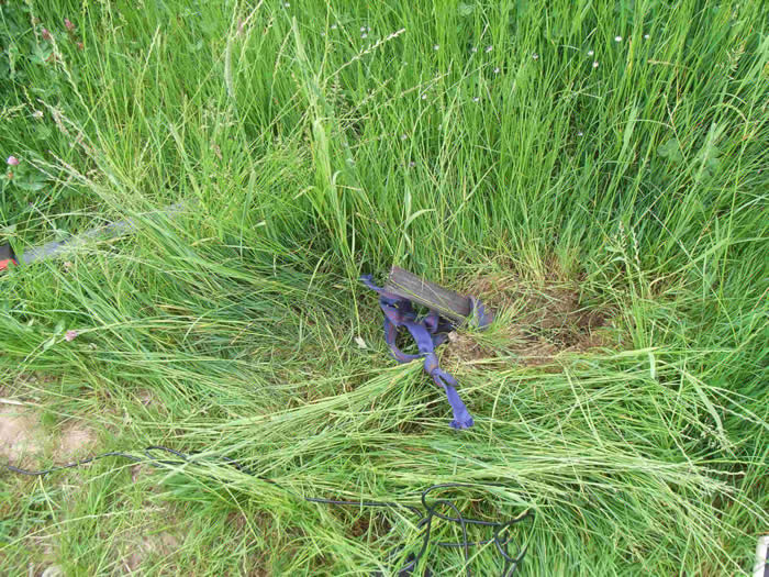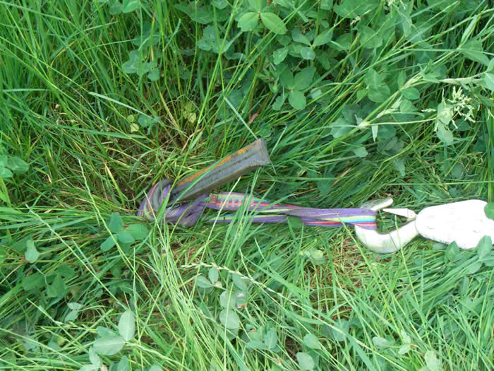 Rope protectors. You can buy these ready made but they are expensive and another thing to transport, we obtain ½" bore black plastic water pipe locally which is dirt cheap (if not free) and incredibly robust. 1 to 1,5m long and flatten one end with your hammer so it grips the rope.