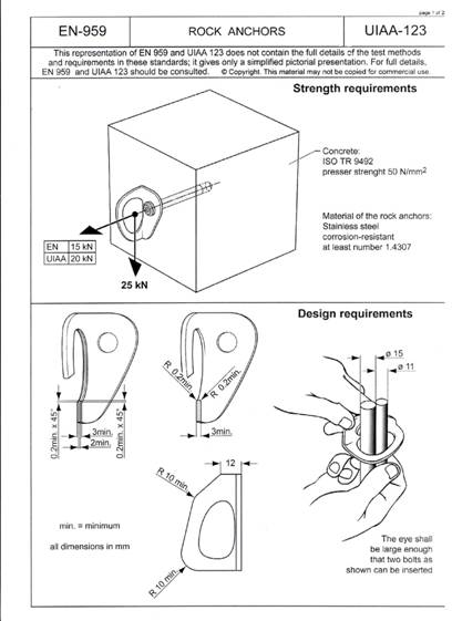 Currently there are no international standards for belay devices for use by climbers and with some thought it is easy to see some of the problems with establishing one. A major difficulty is deciding what parameters to use for braking force, a device perfect for bottom-roping kids on a climbing wall has different performance requirements to one expected to hold a fully equipped climber taking a long factor two fall on ice lines. If some parameters can be decided on, perhaps by having different categories of device, a further major problem is the test rope itself. To be an acceptable standard to international certification bodies some sort of standardised test rope will need to be defined and produced, presumably in various diameters. This is nescessary because ropes vary considerably in their characteristics and allowing the device manufacturers to specify or supply the rope themselves could be open to abuse ( a number of the device manufacturers have commercial interests in rope suplliers or make them themselves), or of course that old UIAA approved hawser-laid No. 4 will come out of the cupboard!