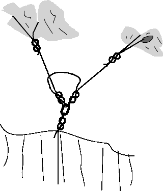 Get a set-up rope! 15m of static rope makes life so much easier. We normally buy 10mm polyester rope from the local hardware store when we are abroad to save on baggage and dump it when we leave. Don´t buy nylon as it is stretchy. Tie the two ends into your anchor points and then figure of eight on a bight in each strand to clip to.