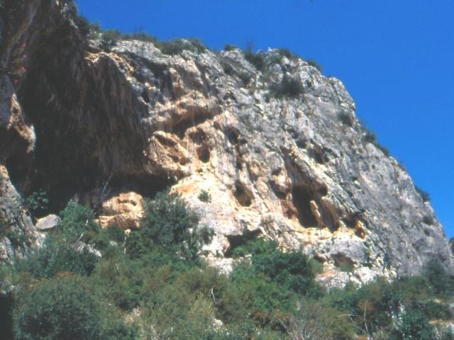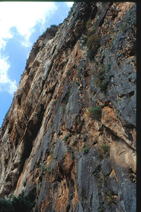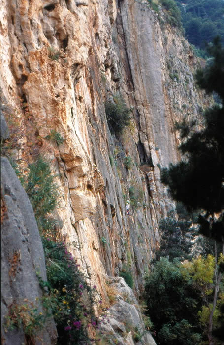 Some of the caves on the road to the campsite, about 20-25m high. ( for those new to Mediterranean rock the orange bits are overhanging).