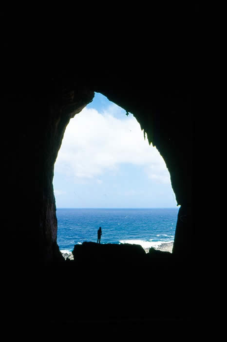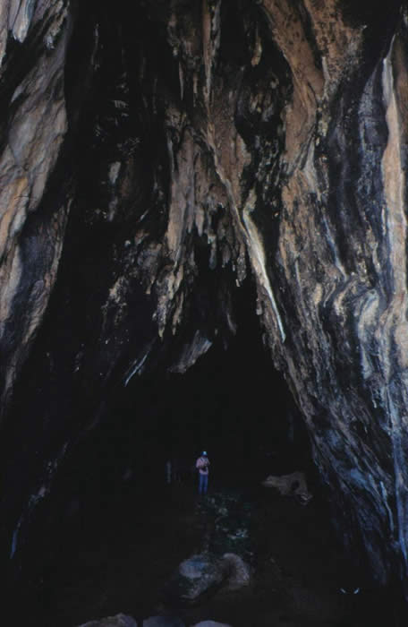 Checking out the stalactites in the cave entrance,