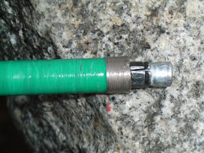 Locate the drill over the stub and turn on the water, positioning the jet to hit the drill tip and start drilling.