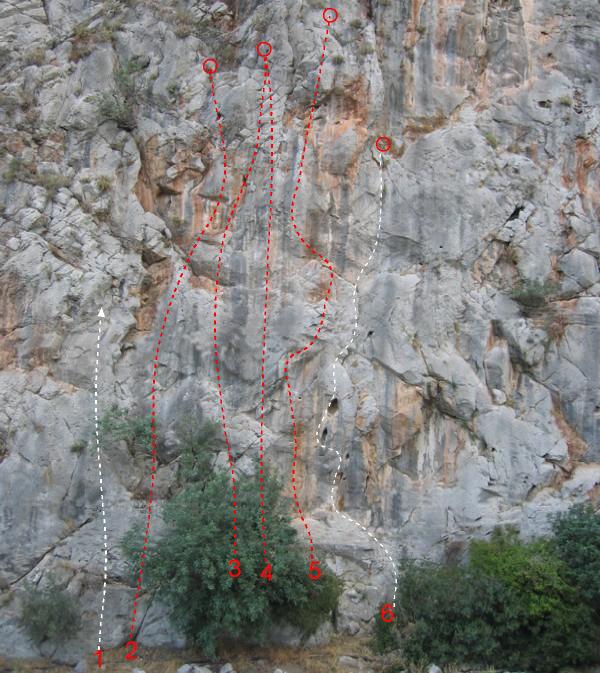 1- The Answer 2- The Question 5b 3- Maria´s Traum 5c 4- Sabbatical 6b 5- Savage Girl 6c+ 6- Savage Man Another from Josef and Maria, second pitch extension to At The Edge.5c.