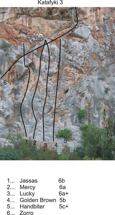 Some new routes by those `hyperactive bolters´ from Austria, Josef and Maria Gstoettenmayr, the picture quality is a bit lacking as some came by e-mail. These routes are located left of Savage Man.