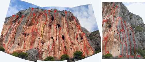 Routes from L to R. 1-Grouvalos- 7a 20m 2- Ponas Ore?- 7b+? 20m 3- Me Stelneis- 6c 20m 4- Tsounami- 7a 20m 5- Thailand-7c+? 20m (project) 6- Mr Snape- 6b 20m, extension 6c+ 33m *** (30m rope o.k.) 7- Kolokotronis- 6a+ 20m ***, extension Super Kolokotronis-7b 30m** 8- Rosida (Russian Lady) 7a+/7b 30m 9- Pontiki- 6b+ ***, extension Arouris-7c(+) 30m ** 10- Anouxi (Spring)- 5c+ 18m ** 11- Kathreptis- 7c+/8a (project) 12- variation to Ape, Chimp 6a 13- Ape- 6a+ 14- Orangutan (extension of Chimp)- 6b 30m * 15- Rosso- 6c+ 25m ** 16- Expresso (variation on Rosso)- 7a *** 17- Kastoras - 6b 17m*** 18- Dirty Dog (ex Lemur)- 6a 17m ** 19- Laoura- 5c 17m *, extension Super Laura- 6b 33m 20- Glyka- 5b+ 17m * 21- Tzoutzouka- 4c 17m * 22- Babylino- 5b 10m 23- Calliope- 6a 15m |