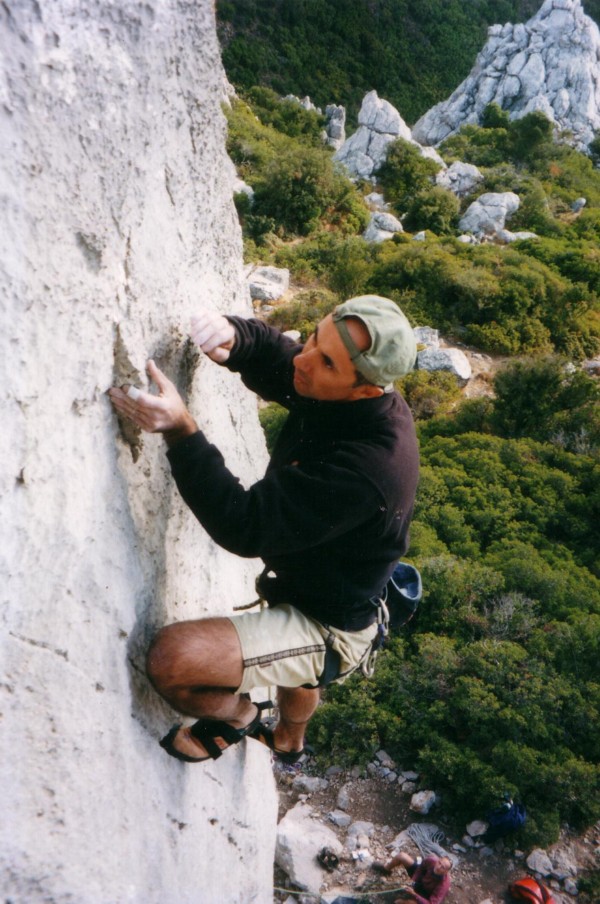 Photo: Aris Theodoropoulos on The Wall, Pillars of the Wind Height. 30m. Altitude.650m. Routes. 56. Season. All Year. Access. Poor. Walk-in. 5min. Water. On Drive-in. Children. Good. Special Kids area with top rope routes for them. Doesn´t look very promising as you walk down to it (5 min) but the good stuff is on the other sides. The cliff for the family climber with a complete kids toproping area with 24 routes between 5-10m complete with easy to thread chain belays to reduce chafe. Grades between 3 and 6c! Otherwise 31 single pitch sport routes up to 30m between 4b and 6b make this a popular playground for the not so talented among us with plenty of good quality routes in the 5b/c grades. The climbing is on the east and south faces allowing shade or sun to be found as required, as the name implies it can be windy here! The Routes. From a number of good routes The Fabulous Thunderbirds 5c and Do It On Sunday 6b are the best on the east face while Supercrack 6a+, Fingerpull 6a and Holzfaller Suppe 5c are the cream of the south wall. |